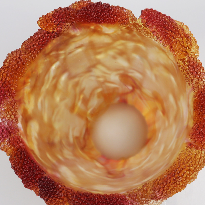 بهعنوان تکنیک اصلی هنر شیشه، ریختهگری با موم از دست رفته روح و بافت را به برداشت میبخشد و به پیشرفتهای دوگانه در «جزئیات قابل تنفس» و «همزیستی رنگ» دست مییابد: