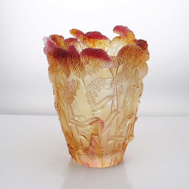 Harvest در نهایت به عنوان یک "بیان معاصر سنت" می ایستد: جوهر معنوی سورگوم از طریق شفافیت شیشه احیا می شود، در حالی که رنگ های گرادیان از زمان به عنوان قلم مویی برای نقاشی شعر کشاورزی استفاده می کنند. ریختهگری با موم گمشده، تکنیکهای باستانی را که در دوران مدرن نهفته است، احیا میکند. هنگامی که نور از درون ظرف عبور می کند، سایه های نوسان خوشه های دانه نه تنها شفافیت کریستالی شیشه و ظرافت کاردستی را آشکار می کند، بلکه رسوب و تولد دوباره حافظه زمین را در آن دوره نشان می دهد - یادآوری این که برداشت نه صرفاً به معنای فراوانی مادی است، بلکه به معنای انتقال نشاط و خلاقیت بین نسلی از هنر سنتی است. در یک زمینه معاصر منفجر می شود.